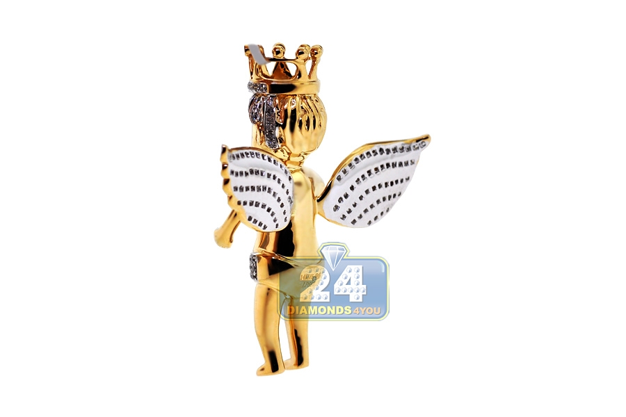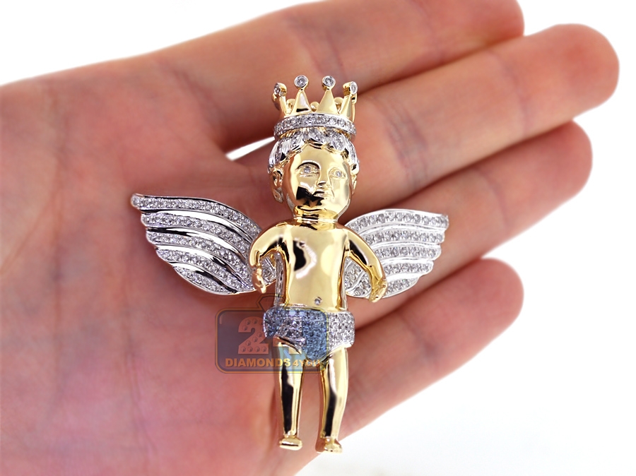 14K Yellow Gold 2.40 ct Diamond Crowned Angel Mens Pendant