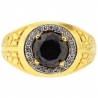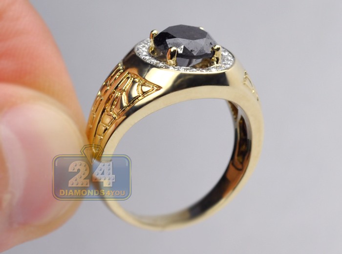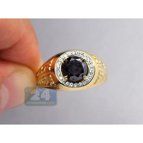 14K Yellow Gold 2.45 ct Black Diamond Solitaire Halo Mens Ring