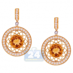 14K Yellow Gold 2.45 ct Citrine Diamond Womens Drop Earrings