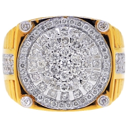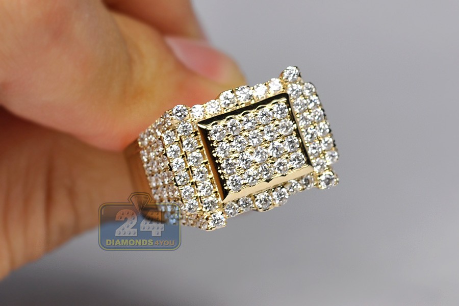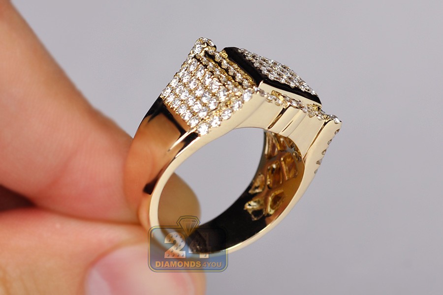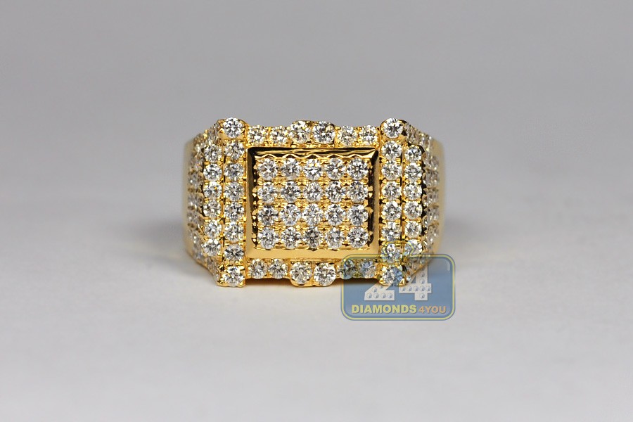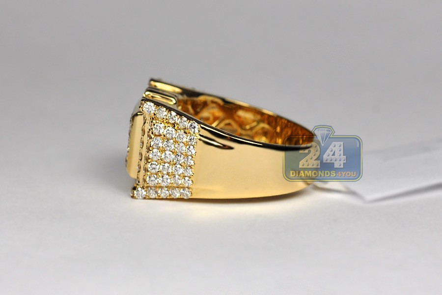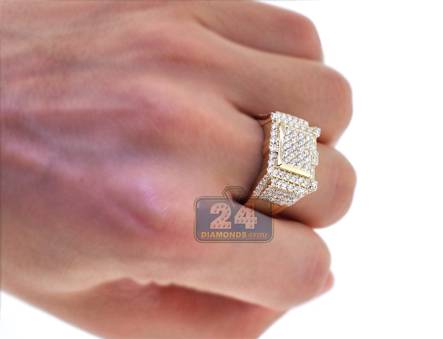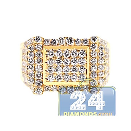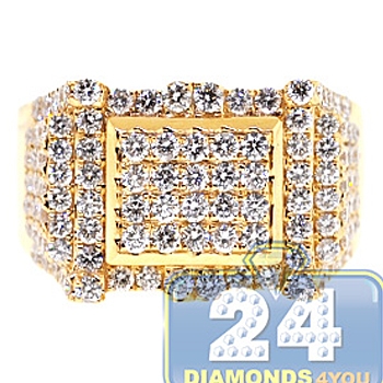 14K Yellow Gold 2.59 ct Diamond Mens Rectangle Ring