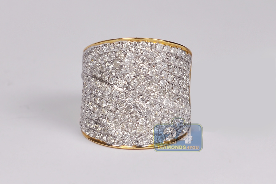 14K Yellow Gold 2.67 ct Diamond Pattern Womens Wide Ring