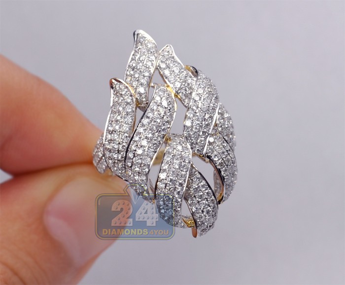 14K Yellow Gold 2.73 ct Diamond Womens Leaf Ring