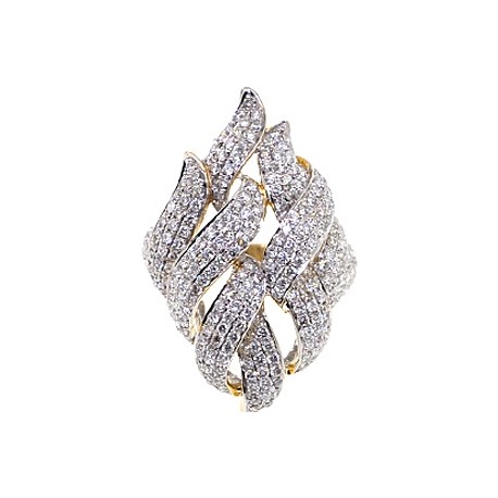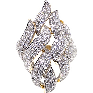Gorgeously handcrafted and inspired by "Mother Nature", our impressive ring features an openwork floral design artfully handmade of warming 14k yellow gold with shiny polish, and skillfully encrusted with genuine round cut diamonds weighting 2.73 carat. Each brilliant is sparkling and eye clean, with SI1-SI2 clarity and G-H color quality. Let this beautiful jewel sparkle on your finger!