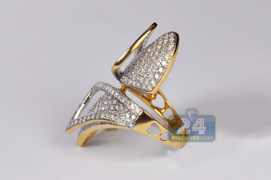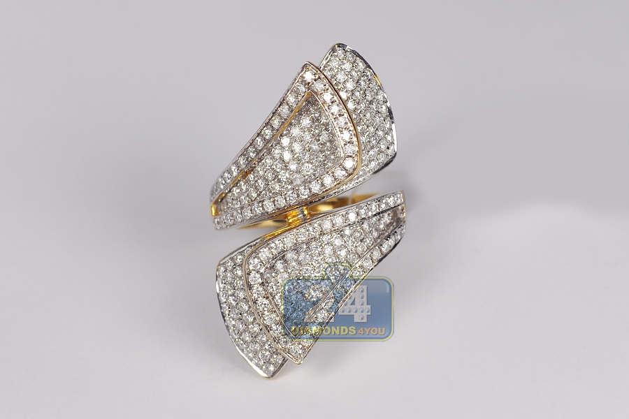 14K Yellow Gold 2.79 ct Diamond Bypass Twist Womens Ring