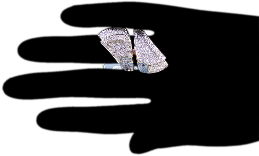 Extravagant and unique, our fancy bypass ring is a real treasure! Genuine materials, exceptional design and top notch craftsmanship make this ring stand out from others! It is expertly handmade of classic 14k yellow gold, and handset with natural 2.79 carats of round cut diamonds. These brilliants are G-H color and SI1-SI2 clarity which makes them absolutely eye clean an sparking. Gorgeous is the word that comes to mind when you see this impressive piece of jewelry!