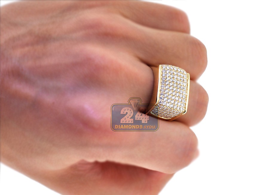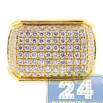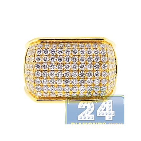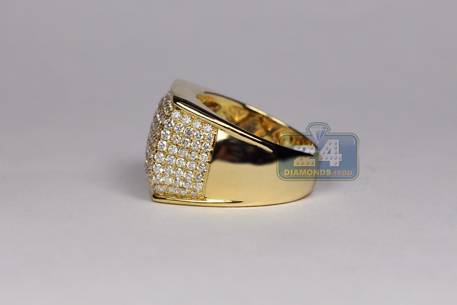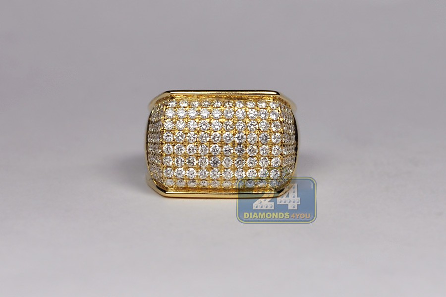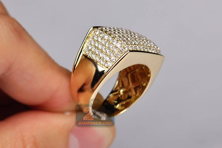 14K Yellow Gold 2.80 ct Diamond Mens Rectangle Signet Ring