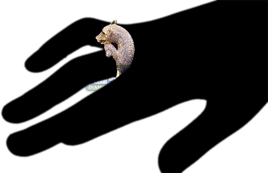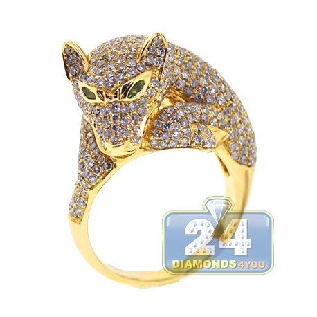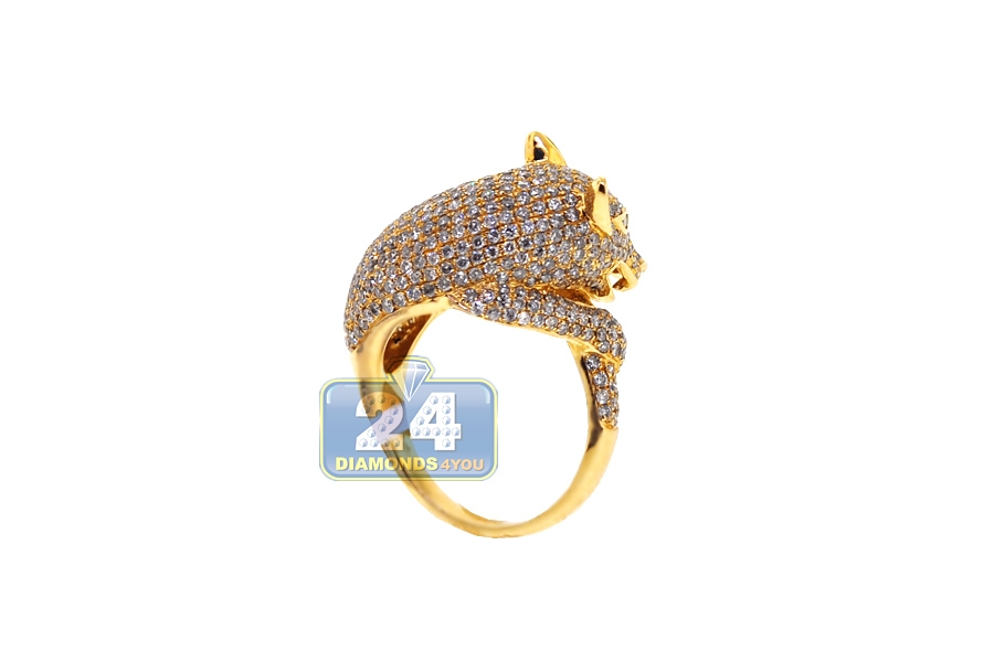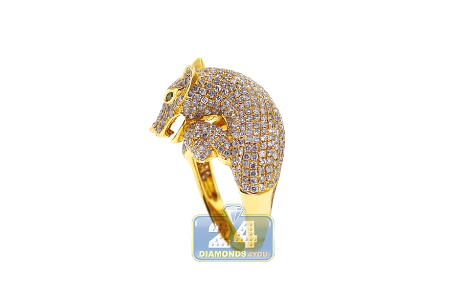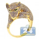 14K Yellow Gold 2.92 ct Diamond Panther Cat Head Womens Ring