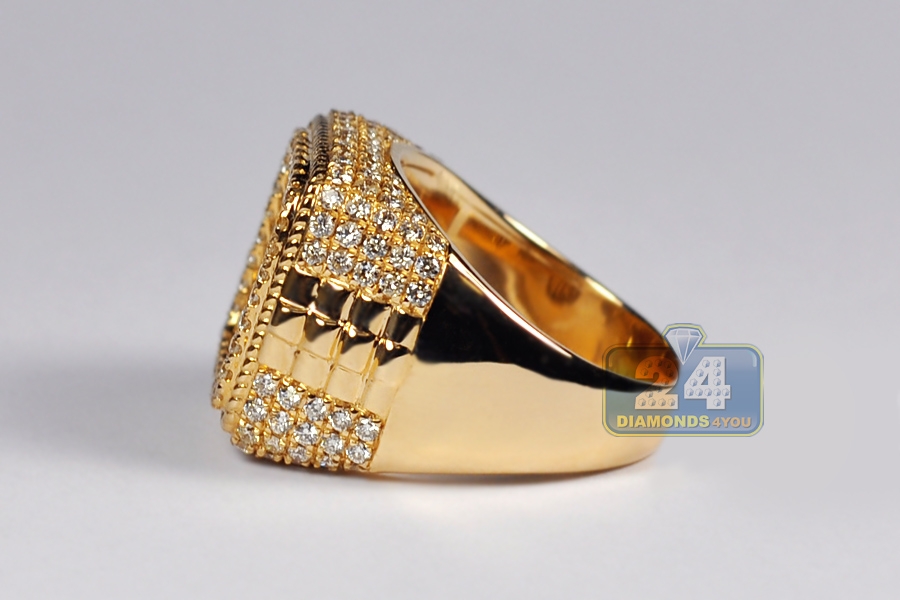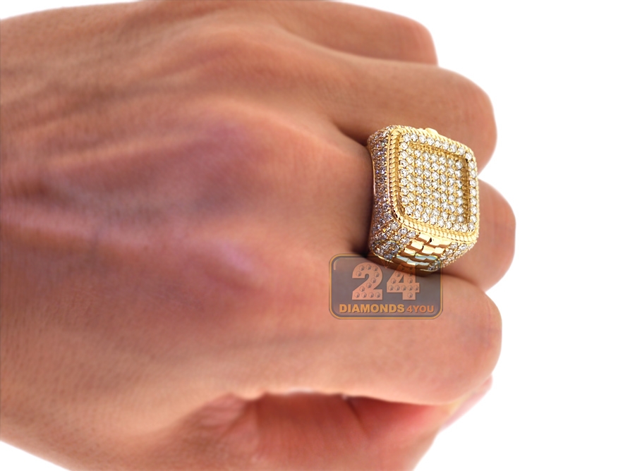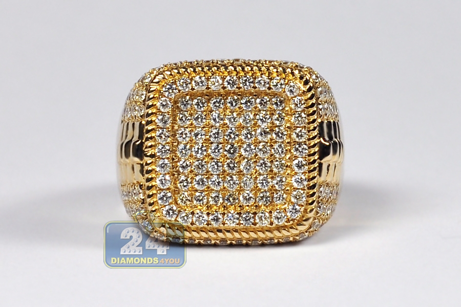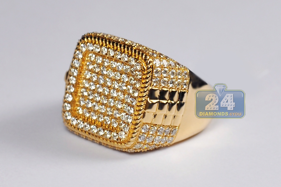 14K Yellow Gold 3.05 ct Diamond Mens Square Pinky Ring