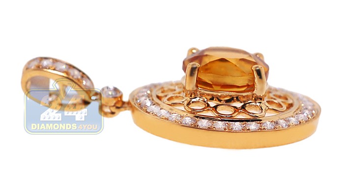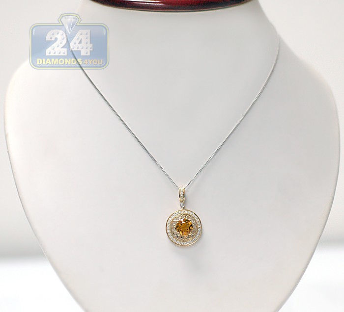14K Yellow Gold 3.35 ct Citrine Diamond Womens Round Pendant