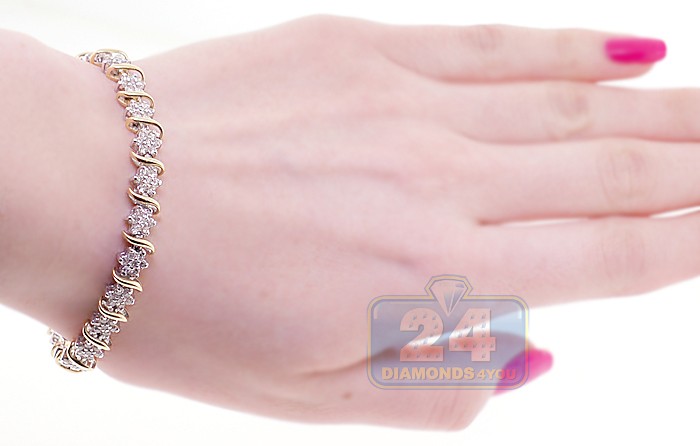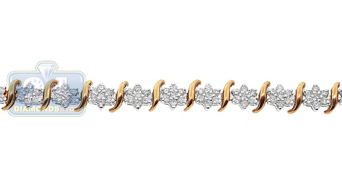 14K Yellow Gold 3.40 ct Diamond Flower Womens Tennis Bracelet