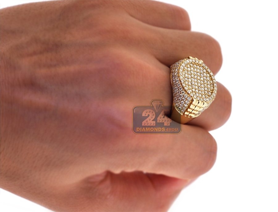 14K Yellow Gold 3.55 ct Diamond Mens Pinky Ring