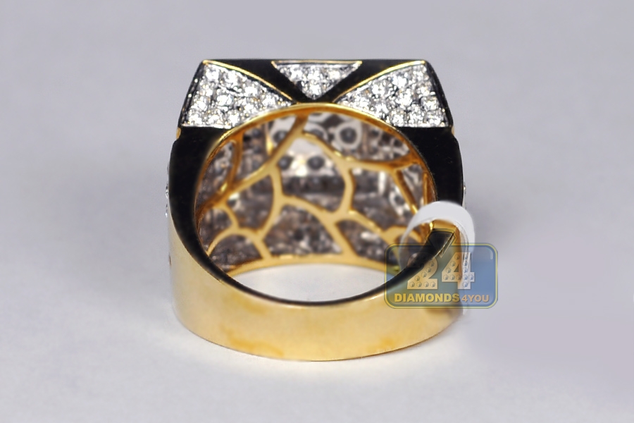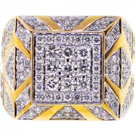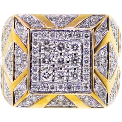 14K Yellow Gold 3.69 ct Diamond Mens Square Ring