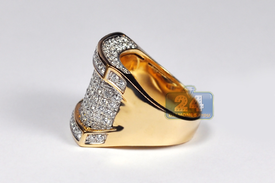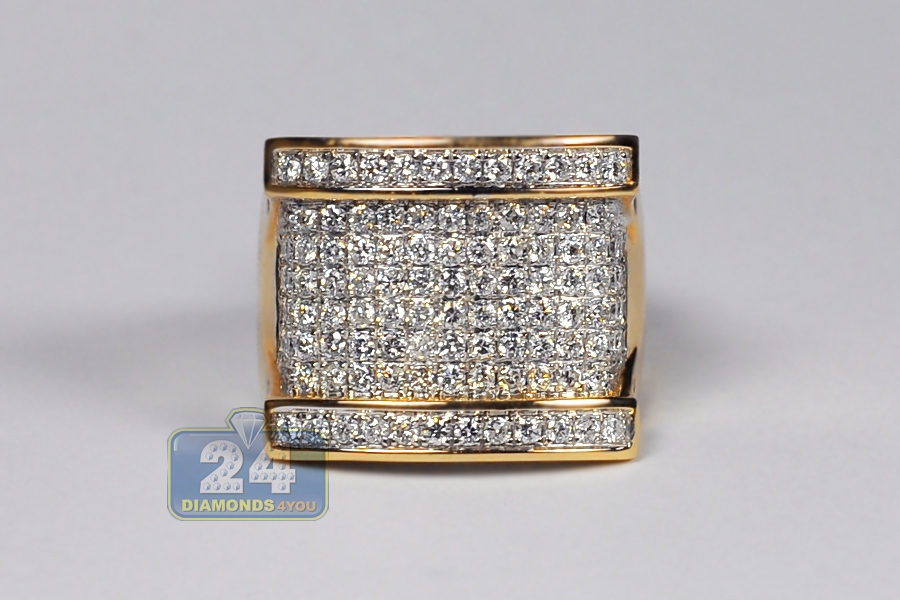 14K Yellow Gold 3.80 ct Diamond Mens Large Ring