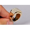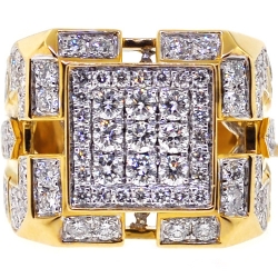 Luminescent, brilliant shine exudes from this handsome diamond ring! The signet is professionally handmade of warming 14k yellow gold with shiny polished finish, and gorgeously amazed with 120 pieces of icy white round-cut diamonds totaling 3.02 carats. This strong and elegant look of the diamond ring is a smart choice for him!