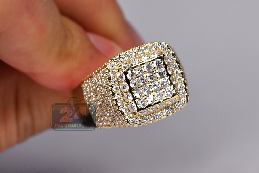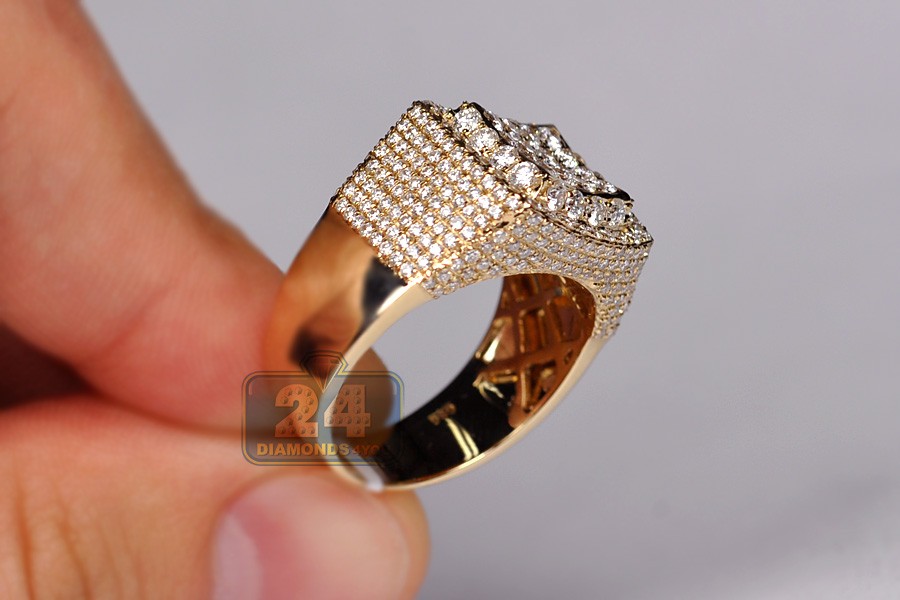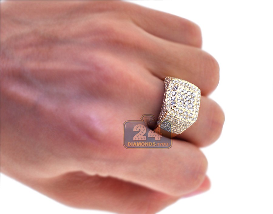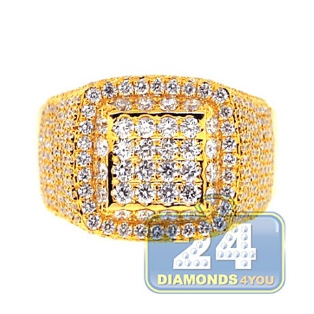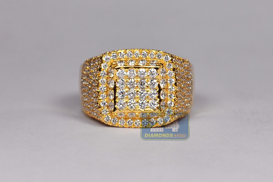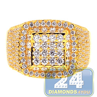 14K Yellow Gold 3.06 ct Diamond Mens Signet Ring