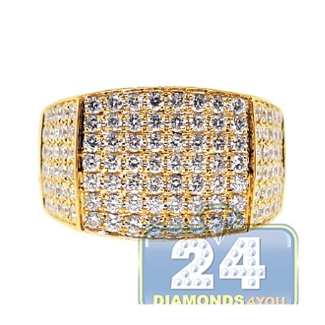 14K Yellow Gold 3.31 ct Round Cut Diamond Mens Rectangle Ring