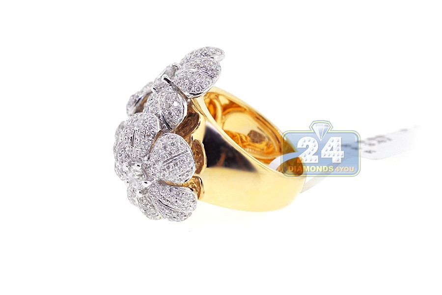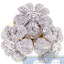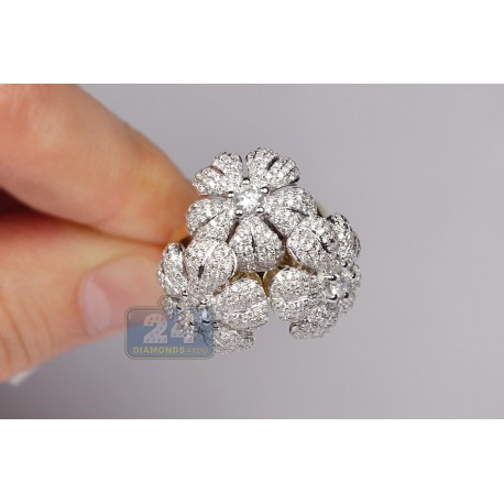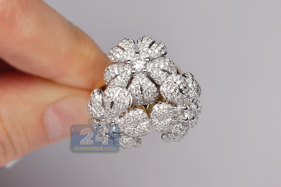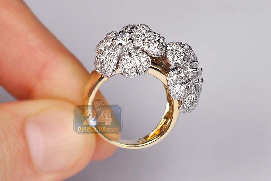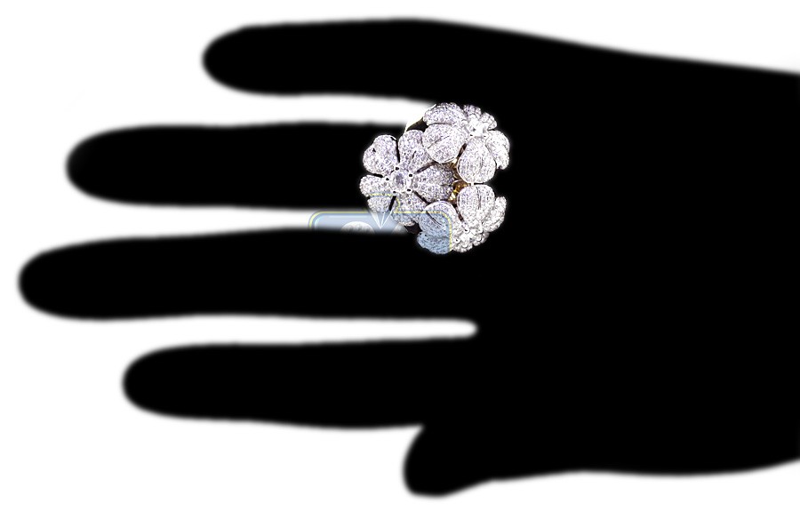 14K Yellow Gold 3.57 ct Diamond Triple Flower Cocktail Ring