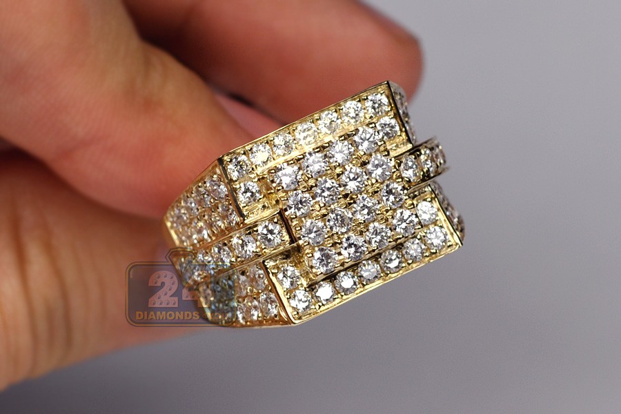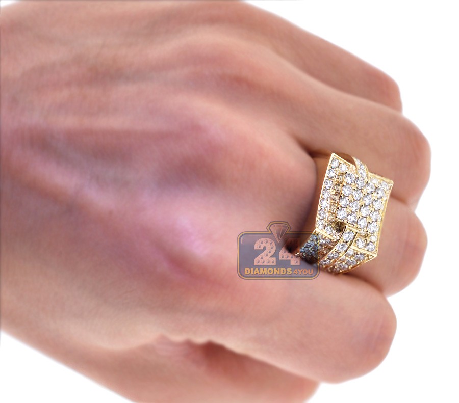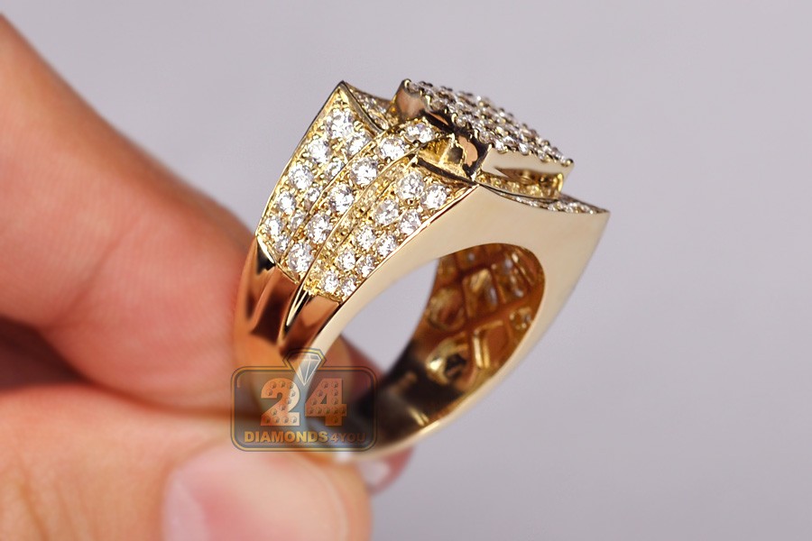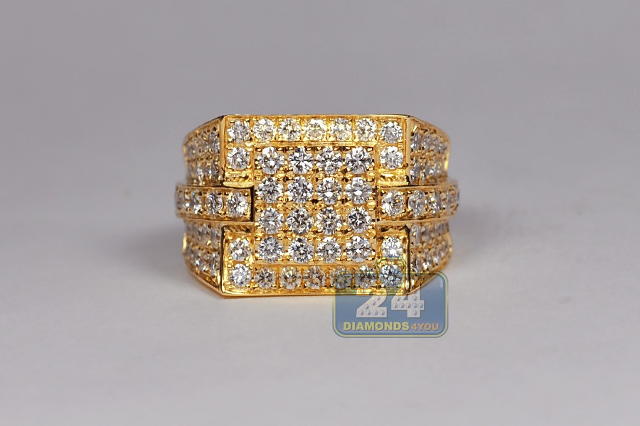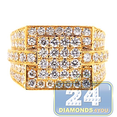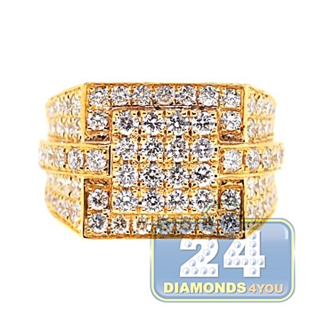 14K Yellow Gold 3.66 ct Iced Out Diamond Mens Signet Ring