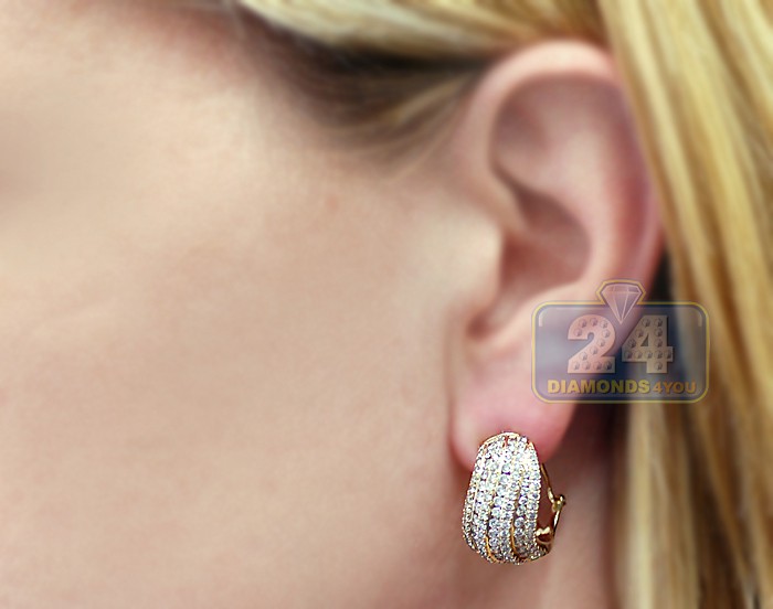 14K Yellow Gold 3.66 ct Diamond Womens Huggie Earrings