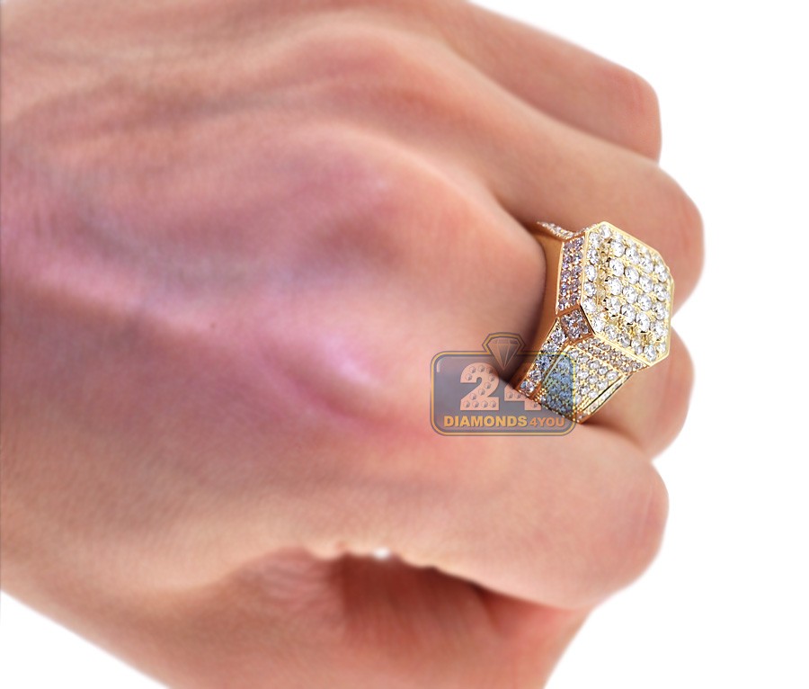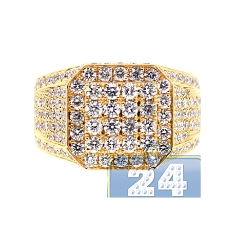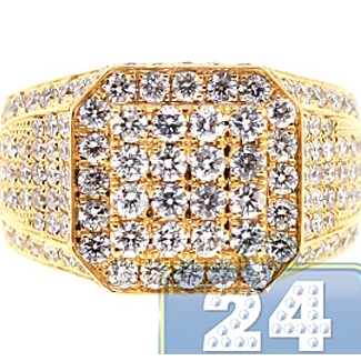 14K Yellow Gold 3.96 ct Diamond Mens High Octagon Ring