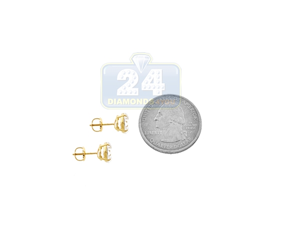 14K Yellow Gold 4.00 ct Round CZ Screw Stud Earrings 8 mm