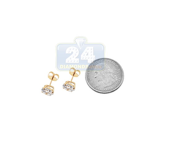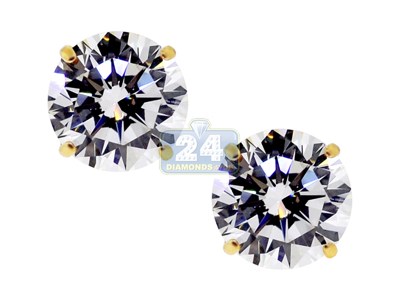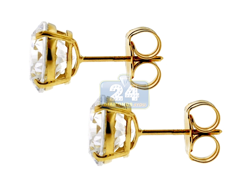 14K Yellow Gold 4.00 ct Round White CZ Push Stud Earrings 8 mm
