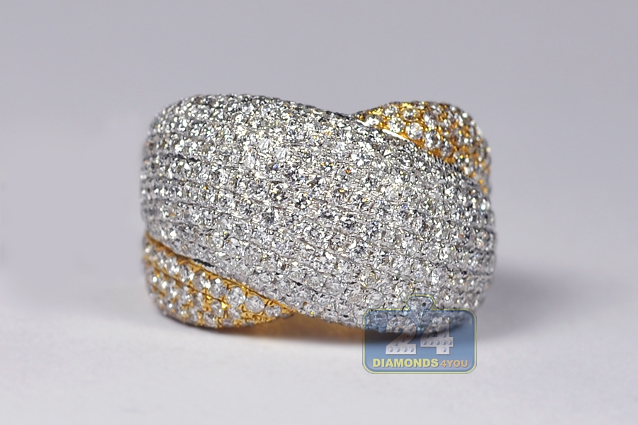 14K Yellow Gold 4.02 ct Diamond Womens Criss Cross Ring