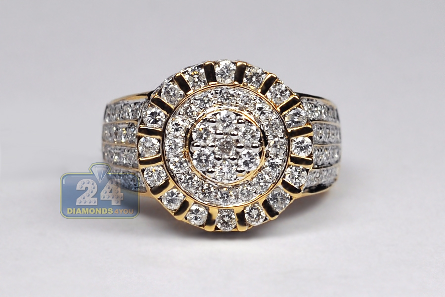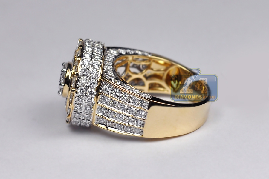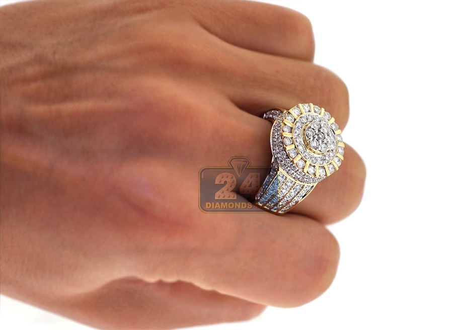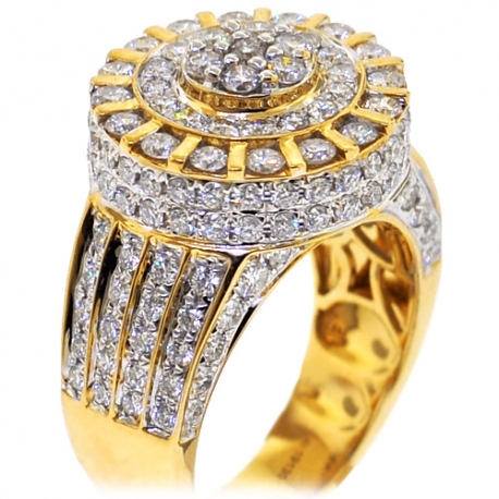 14K Yellow Gold 4.04 ct Diamond Cluster Men's Ring