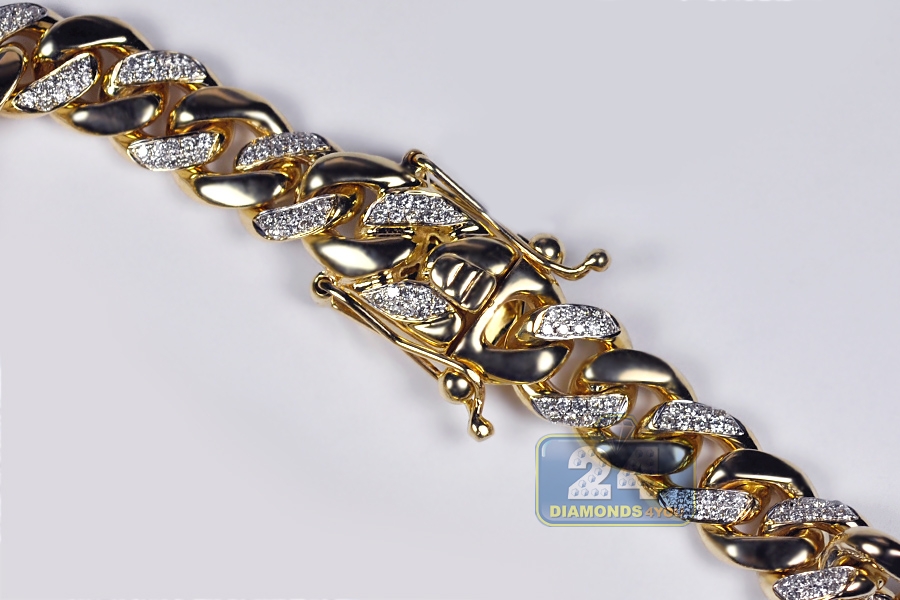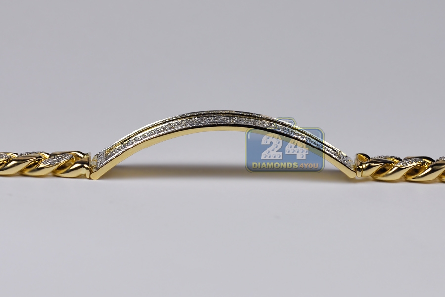 14K Yellow Gold 4.21 ct Diamond Cuban Mens ID Bracelet 9.25 inches