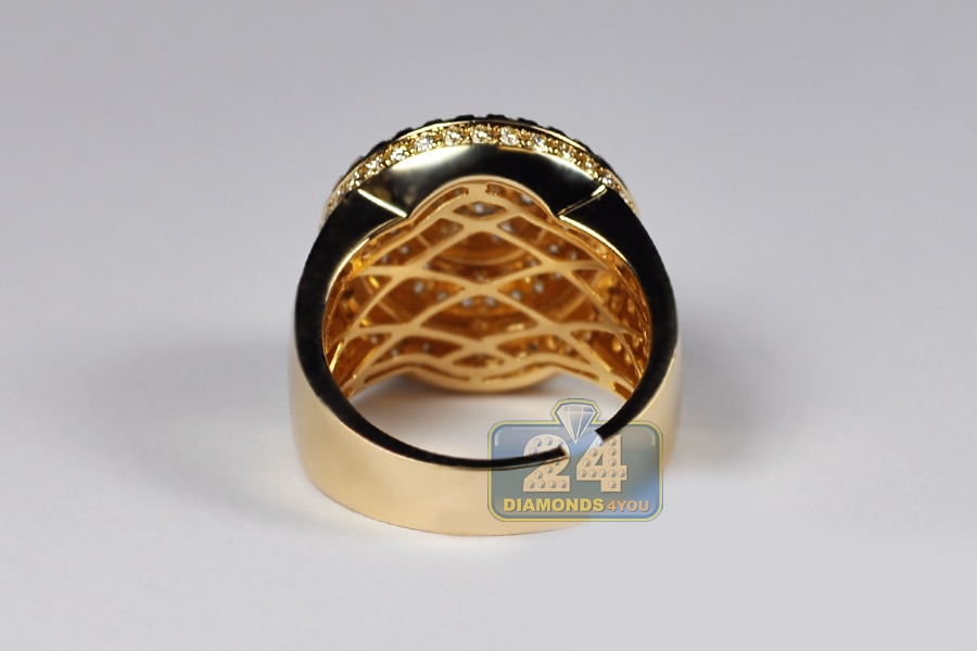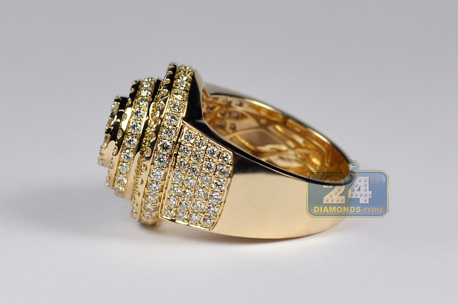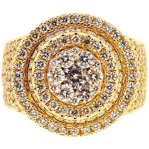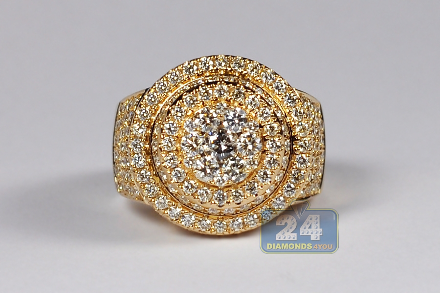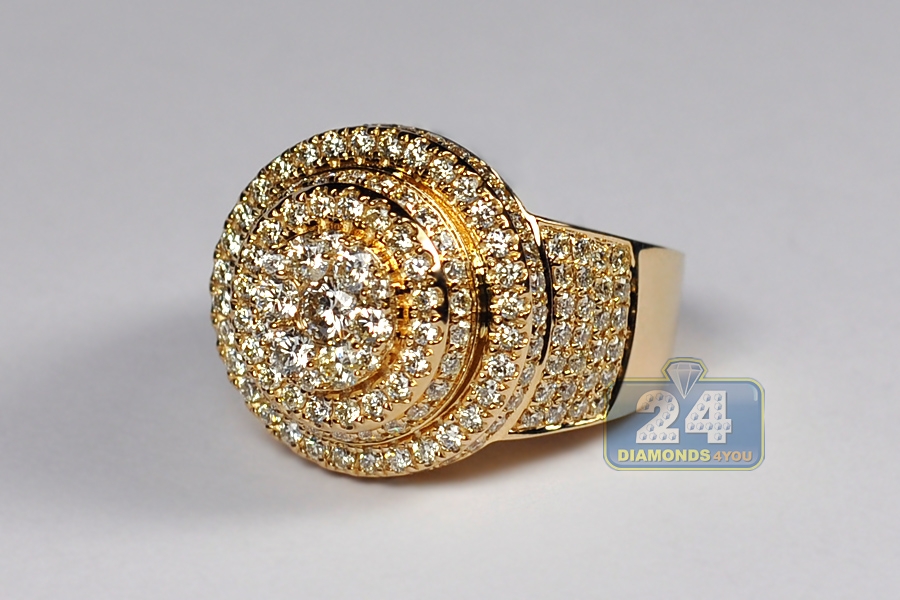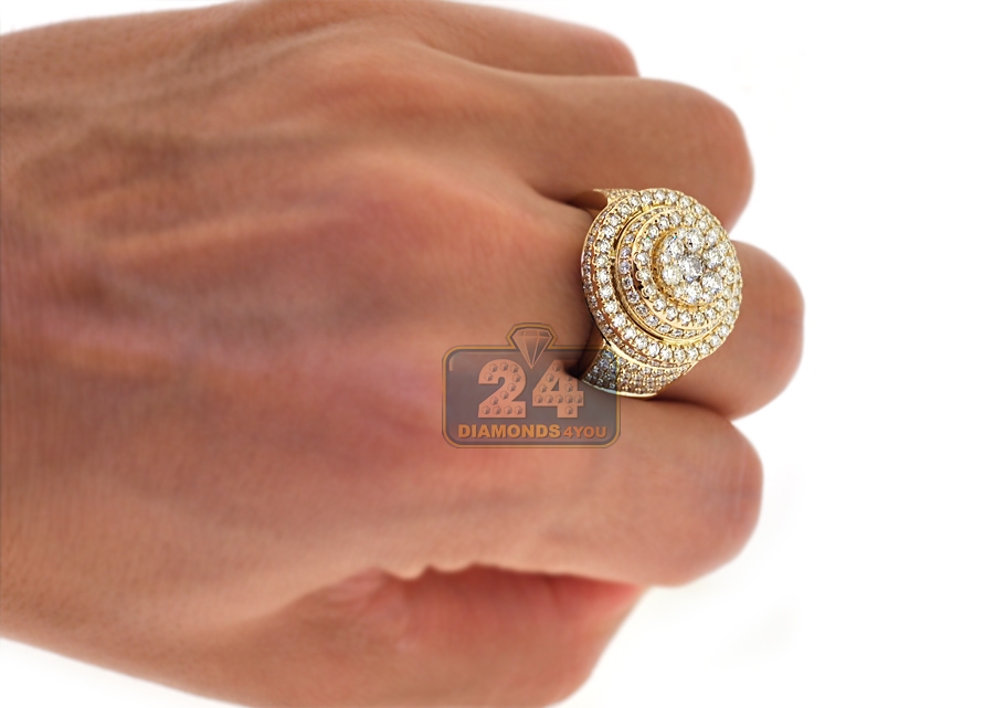 14K Yellow Gold 4.30 ct Diamond Cluster Mens Round Ring