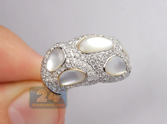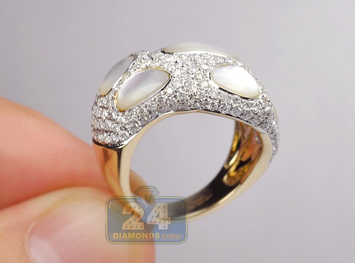 14K Yellow Gold 4.52 ct Diamond Womens Dome Opal Ring