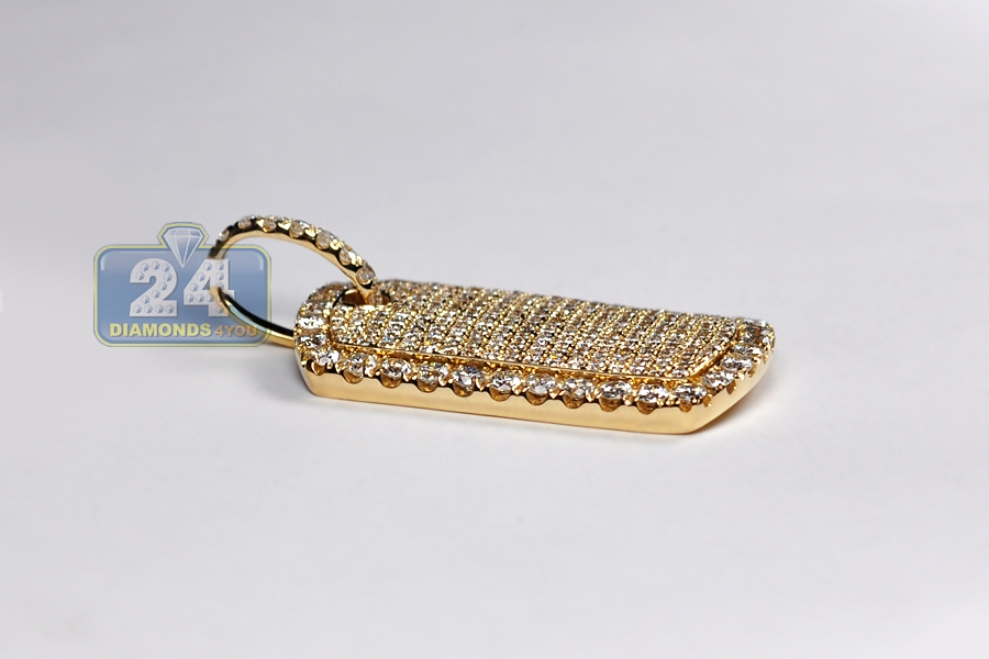 14K Yellow Gold 4.80 ct Diamond Dog Tag Mens Pendant
