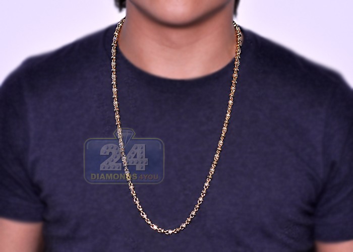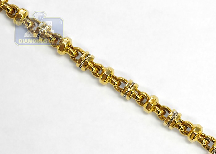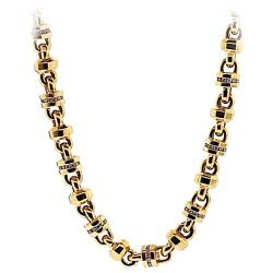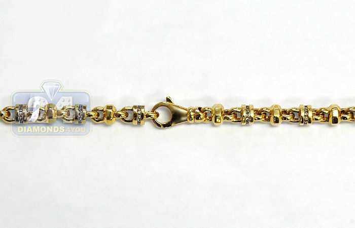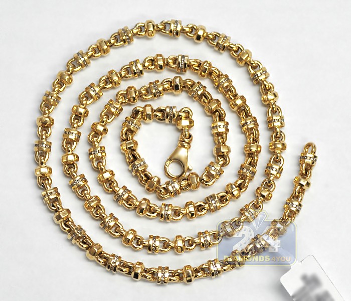 14K Yellow Gold 4.13 ct Diamond Fancy Bead Link Mens Chain