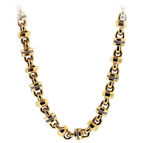Amaze your neckline with our masculine diamond bead chain! Ably handmade of warm 14k yellow gold, it has precisely polished shimmering finish. The fancy bead links are channel set with 4.13 carats of round brilliant-cut icy white diamonds, SI1-SI2 clarity and G-H color. This men's diamond necklace measures 30 inches in length, 6 mm in width, and secured by a comfortable lobster clasp. Original bold design of the diamond link necklace will make you fell more steady!