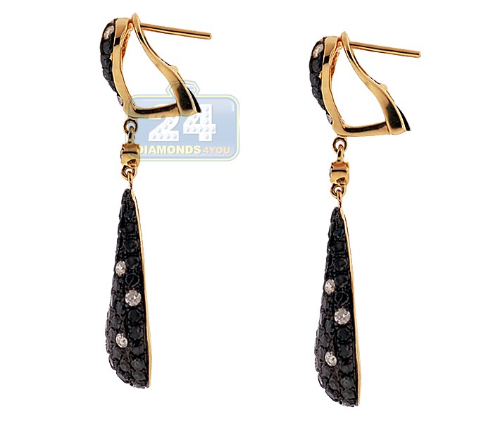14K Yellow Gold 4.19 ct Black Diamond Womens Oval Drop Earrings