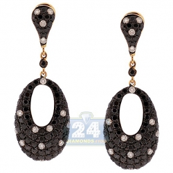 Fanciful fashion fills these fabulous oval drop earrings featuring round-cut black and icy white natural diamonds, all totaling 4.19 carats. They're masterly produced from warm 14k yellow gold with black rhodium accents. Our women's diamond earrings measure 40 mm in hanging length and 15 mm in width. A lovely look for a special event!