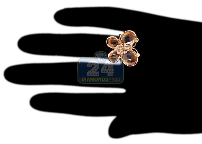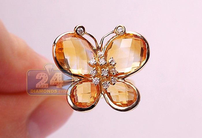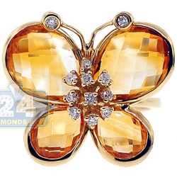 14K Yellow Gold 4.39 ct Yellow Citrine Diamond Butterfly Cocktail Ring