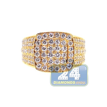 14K Yellow Gold 4.44 ct Diamond Mens Square Shape Ring