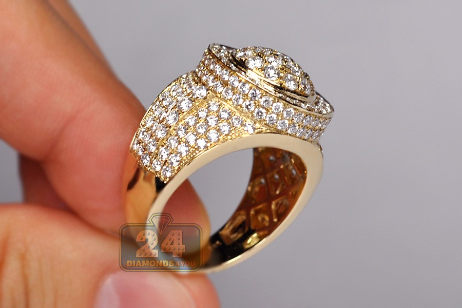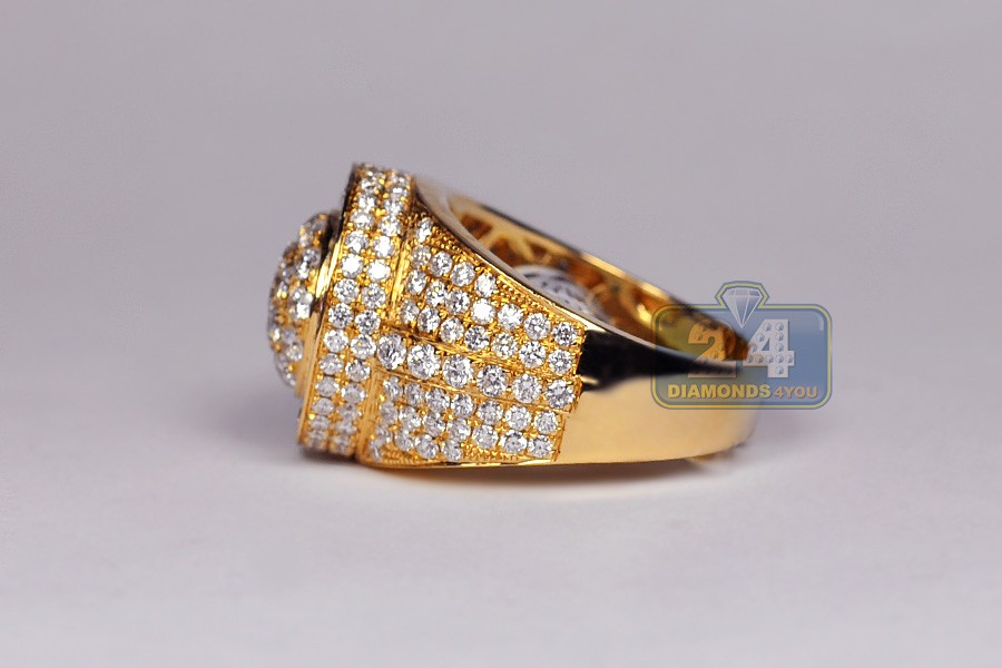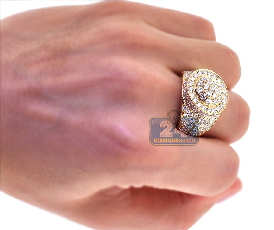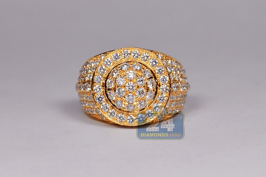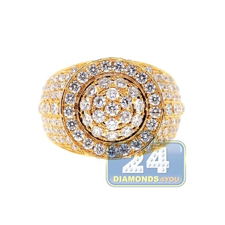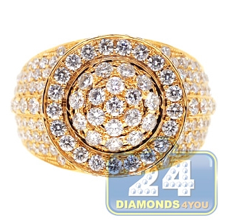 14K Yellow Gold 4.68 ct Diamond Cluster Mens Signet Ring