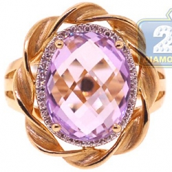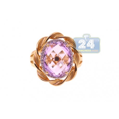 14K Yellow Gold 4.73 ct Amethyst Diamond Halo Cocktail Rope Ring