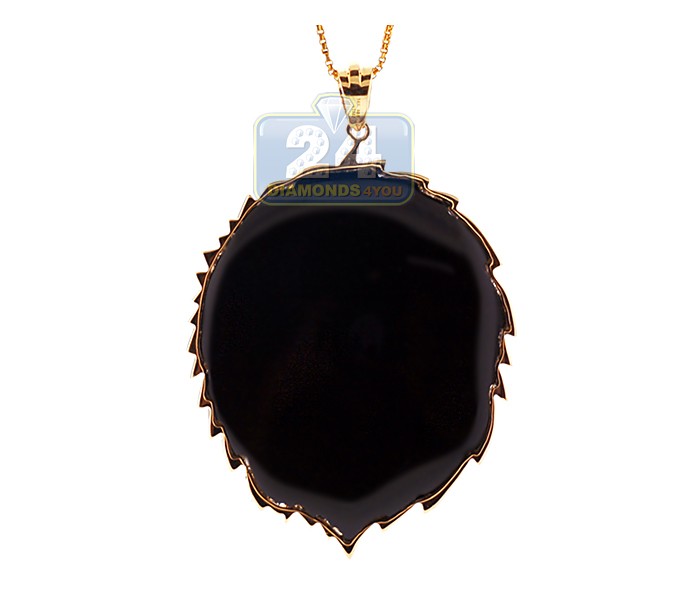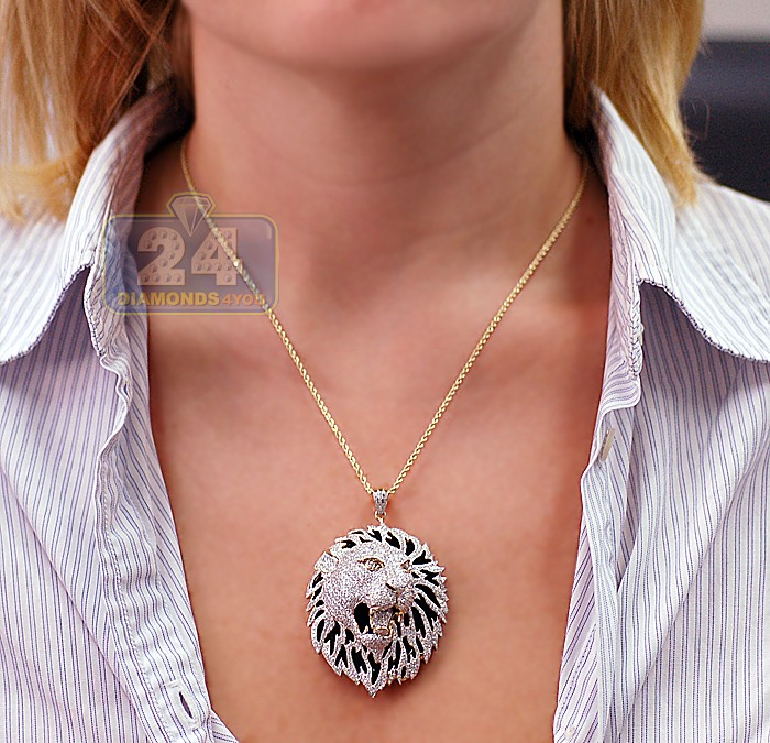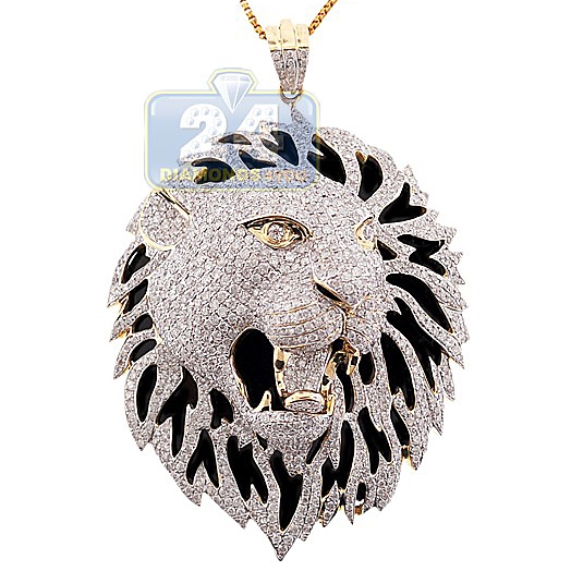 This pendant pays luxurious upscale tribute to one of the most beautiful creatures to ever stalk the planet's wild exotic spaces. Each stunning handcrafted pendant is cast in classic 14k yellow gold and black ceramic back. Our men's diamond pendant measures 2.5 inches in total height and 1.75 inches in width. Showcase your wild side by adding it to any look, display it as a valuable collectible, or give it as an exquisite gift to be cherished for a lifetime.