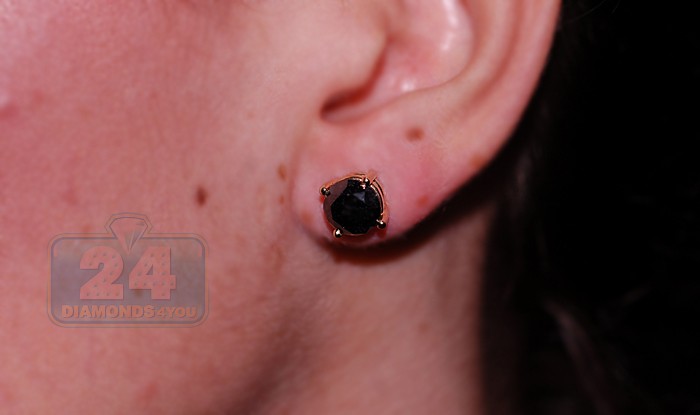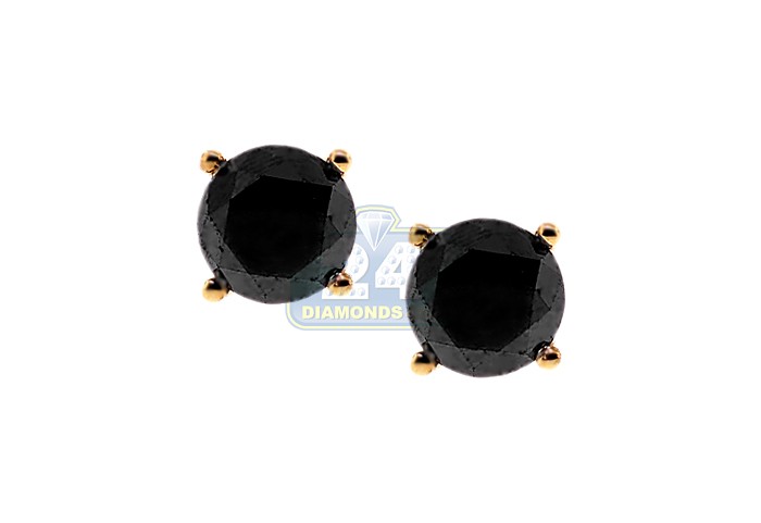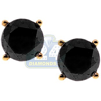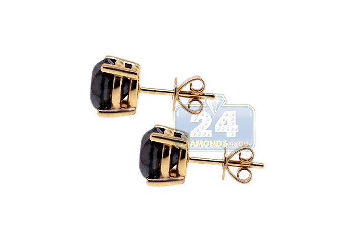 14K Yellow Gold 5.46 ct Black Diamond Mens Stud Earrings
