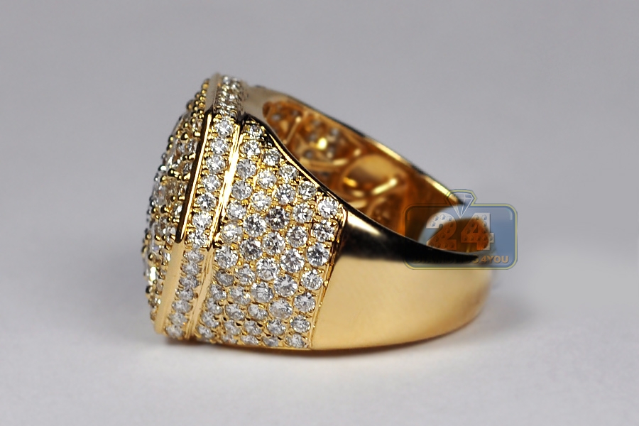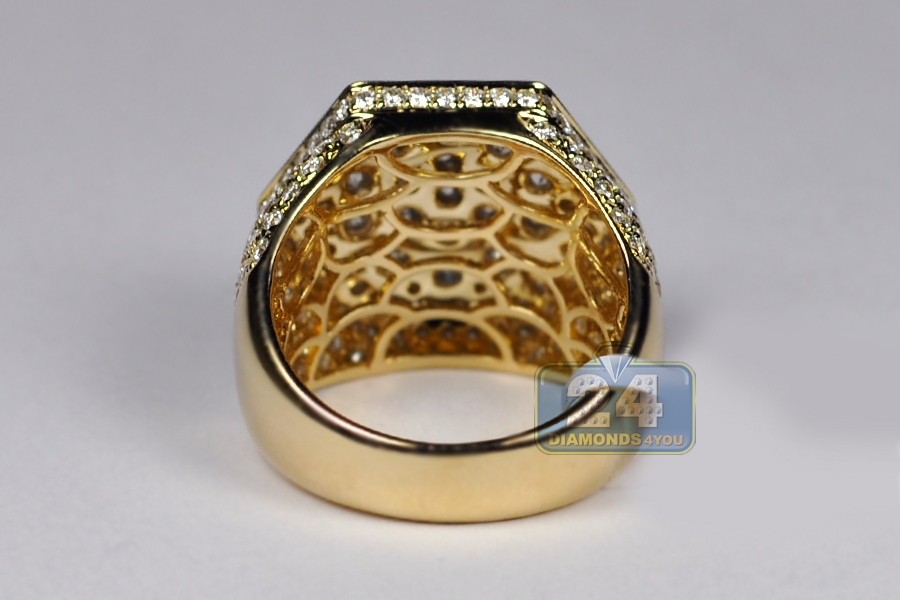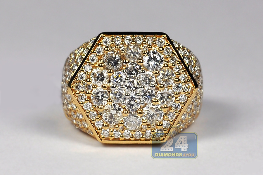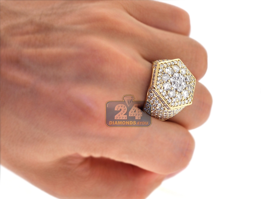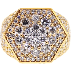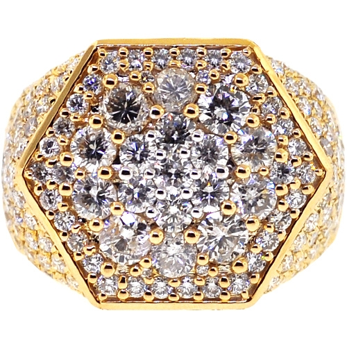 14K Yellow Gold 5.58 ct Diamond Mens Hexagon Ring