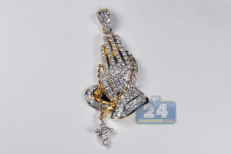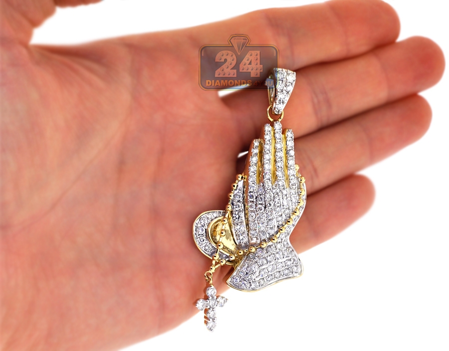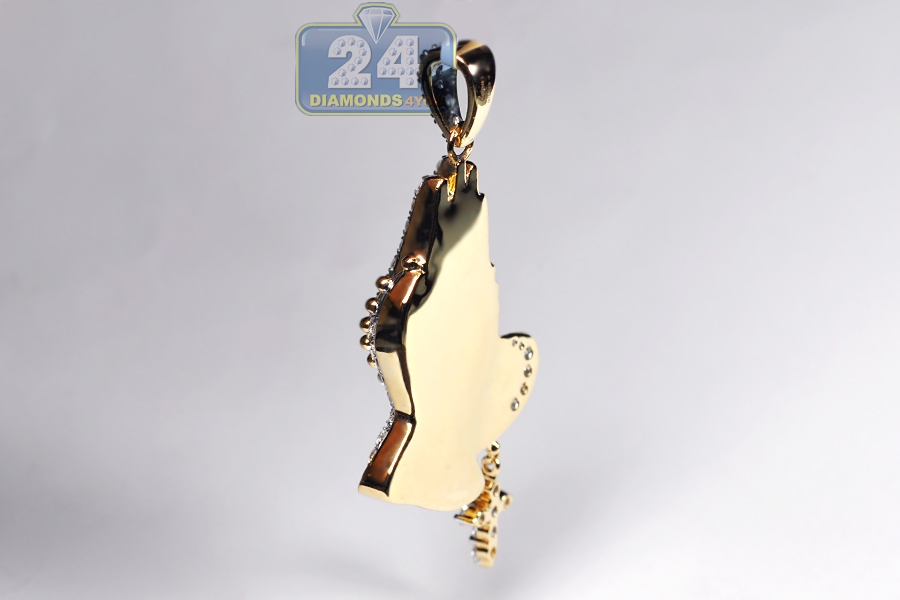 14K Yellow Gold 5.73 ct Diamond Praying Hands Mens Pendant