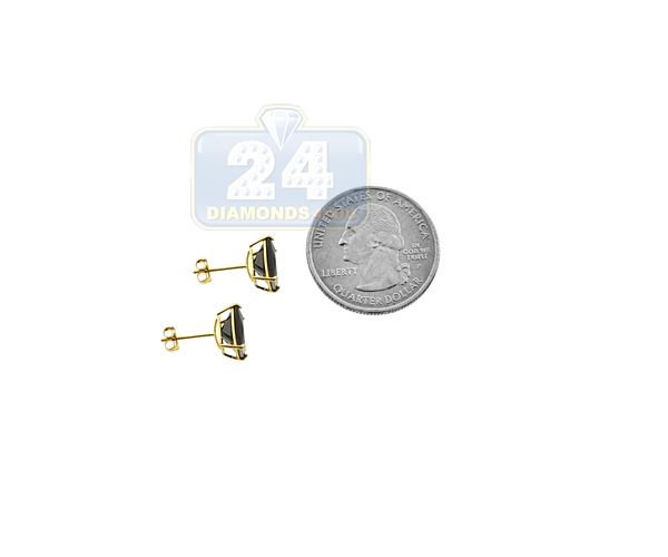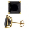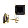 14K Yellow Gold 6.00 ct Black Square CZ Push Stud Mens Earrings 8 mm
