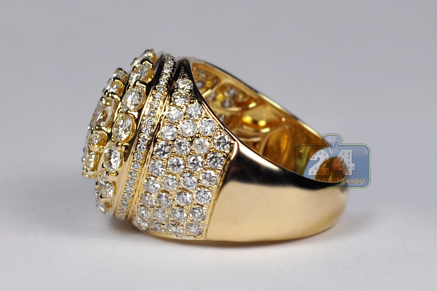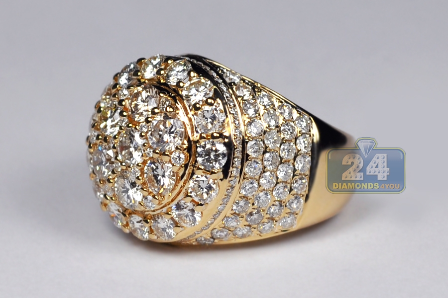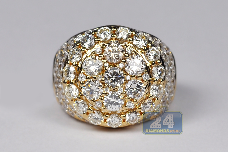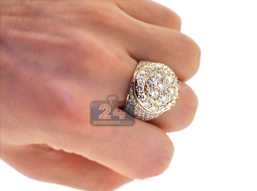 14K Yellow Gold 6.24 ct Diamond Mens Round Ring