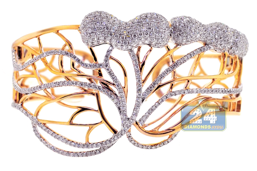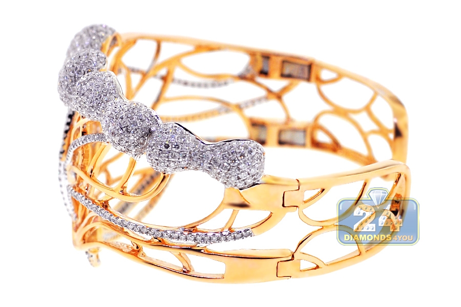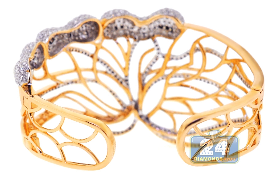 14K Yellow Gold 6.24 ct Diamond Womens Openwork Bangle Bracelet