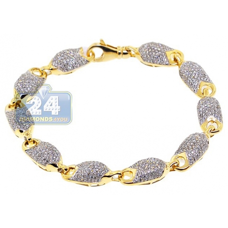 14K Yellow Gold 6.07 ct Diamond Puff Link Mens Bracelet