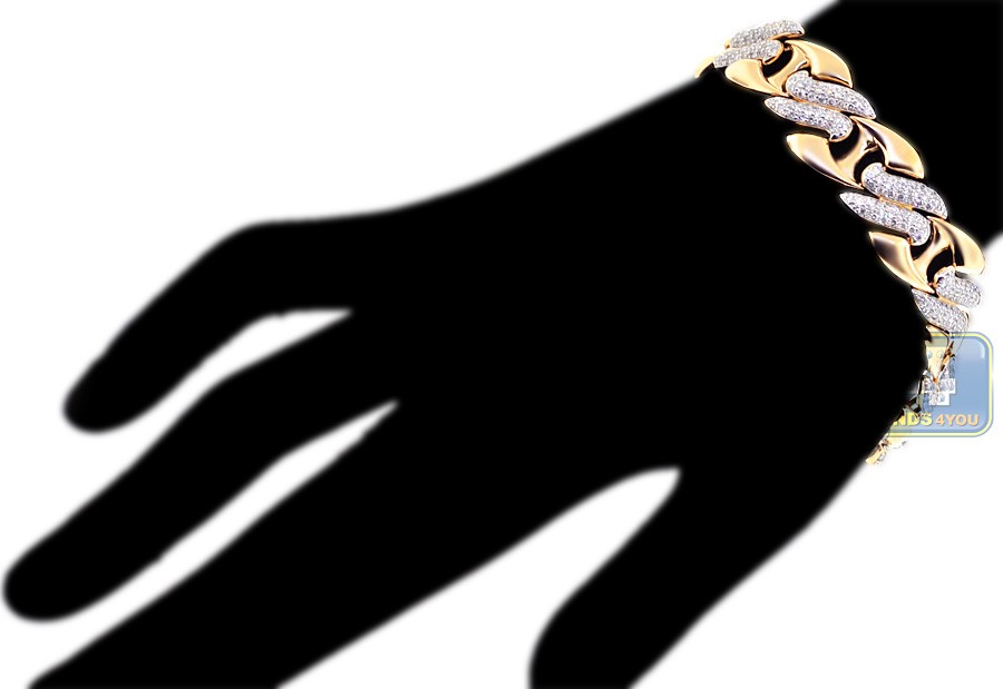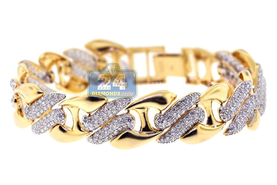 Fancy and modern, our women's diamond bracelet will elevate any attire! Ably manufactured from hot 14 karat yellow gold, it's highly polished for ultra shimmering look. This mariner link bracelet is accented with 6.30 carats of icy white round brilliant-cut real diamonds. It also has length of 8.5 inches and width of 15 mm. This gorgeous diamond bracelet has a thoughtful look any woman would adore!