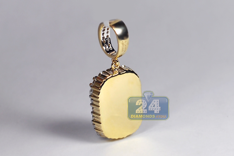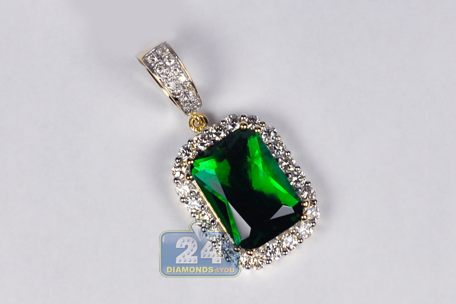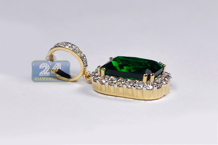 14K Yellow Gold 7.00 ct Emerald Diamond Mens Drop Pendant